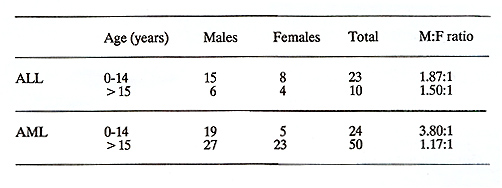 a peak at 5 to 14 years (Table 1) (2). The majority o leukaemias