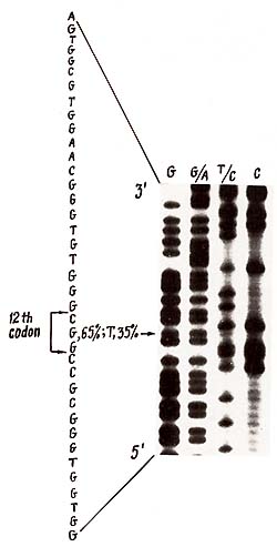 of substitution in codon 12 that altered msp site of restriction (vertical
