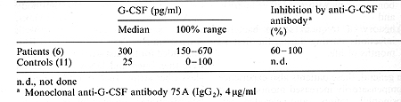 G-CSF levels than sera from controls (Table 1 ). From these proliferation