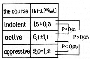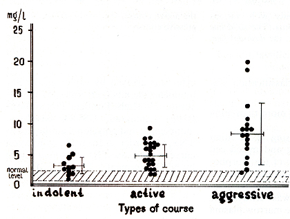 in patients with indolent and active courses (6.1 +- 1.1 ng/ml;