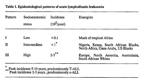 into the diagnosis of ALL in sub-Saharan Africa, the rate of diagnosis