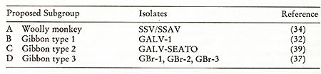 IV. characterization of woolly monkey and gibbon viral antigens.