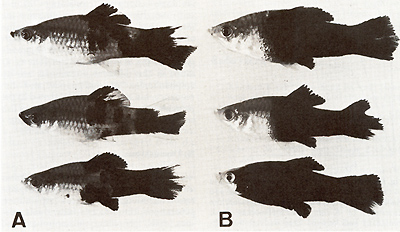 X. variatus, X. cortezi, X. helleri, and their hybrids were employed