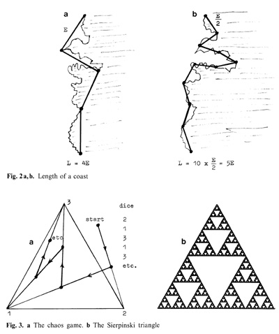 classical fractal known for a long time as the Sierpinski triangle, shown in Fig. 3 b. The process described may also be considered as a dynamic system with the Sierpinski triangle as at tractor, that is, the motion of the system is finally attracted to the Sicrpinski triangle. Fractals appear as at tractors of nonlinear dynamic systems. (For the connection between fractals and dynamic systems as well as for an astonishing gallery of