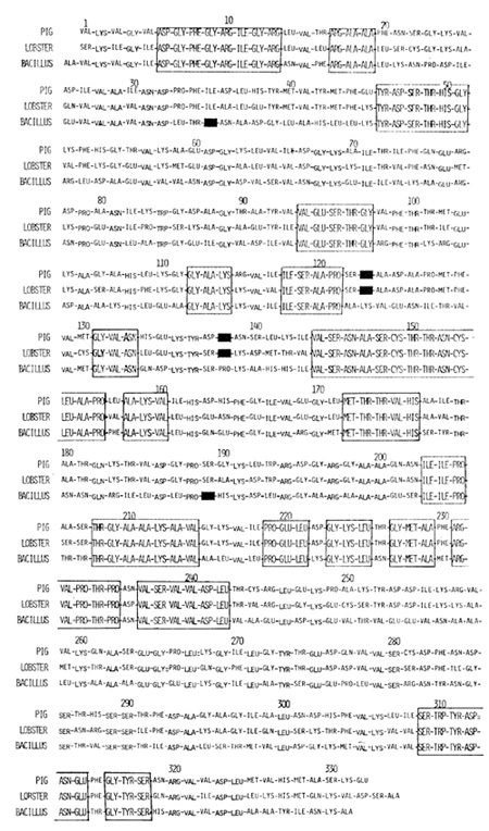 the bacillus is Val, while that of the lobster is Ile. At these