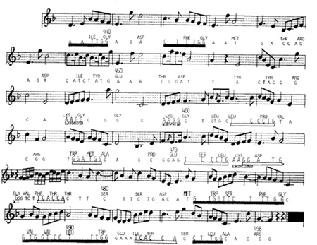 This musical transformation for violin of the coding scgment is