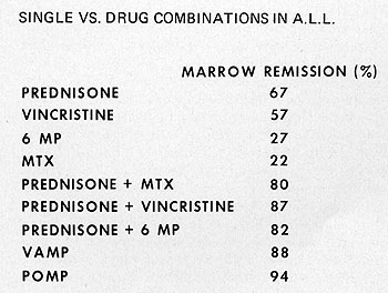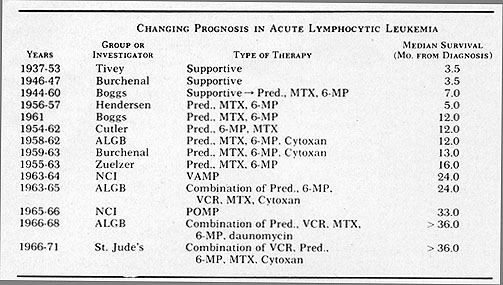 Prior to twenty-five years ago, there was no specific therapy for acute leukemia and survival of individuals with these diseases was usually no more than 3 or 4 months. There was no useful specific therapy, treatment consisting largely of blood transfusions and other supportive measures. X-irradiation, radioactive phosphorous, benzene, potassium arsenite, and nitrogen mustard, although of some use in chronic leukemia, were of little value in acute leukemia. Then, in 1948, Farber and his colleagues ( 1) reported that folic acid antagonists could induce com plete remission in acute lymphocytic leukemia of children.