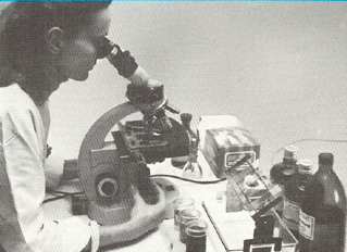 Arbeitsplatz mit Mikroskop und Färbebank ( Kosten je nach Mikroskop ab 5000 EUR )
